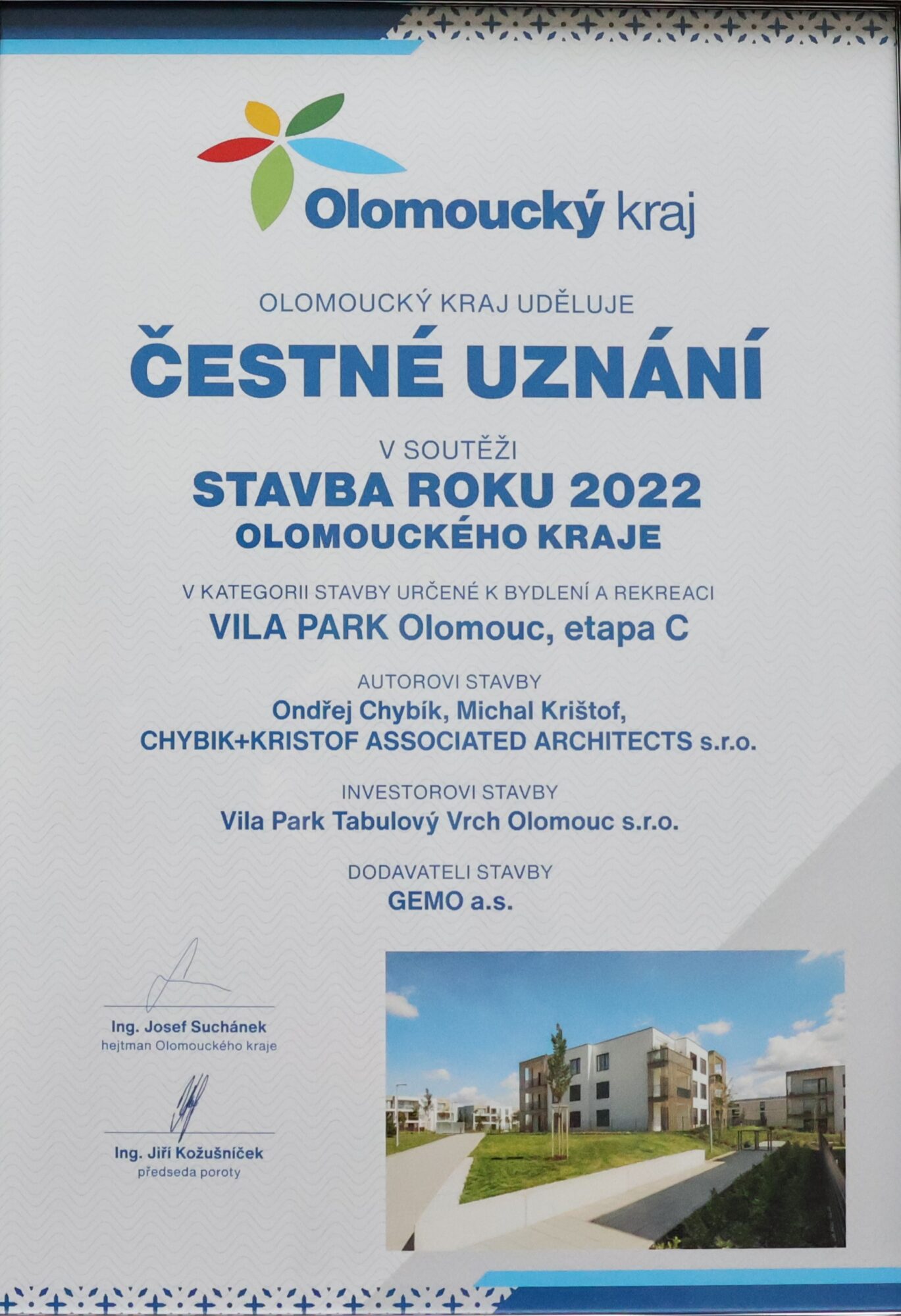 - For the participation in the final in the Institution/Industry category with the project: Administrative Building of GEMO OLOMOUC, spol. s r.o.