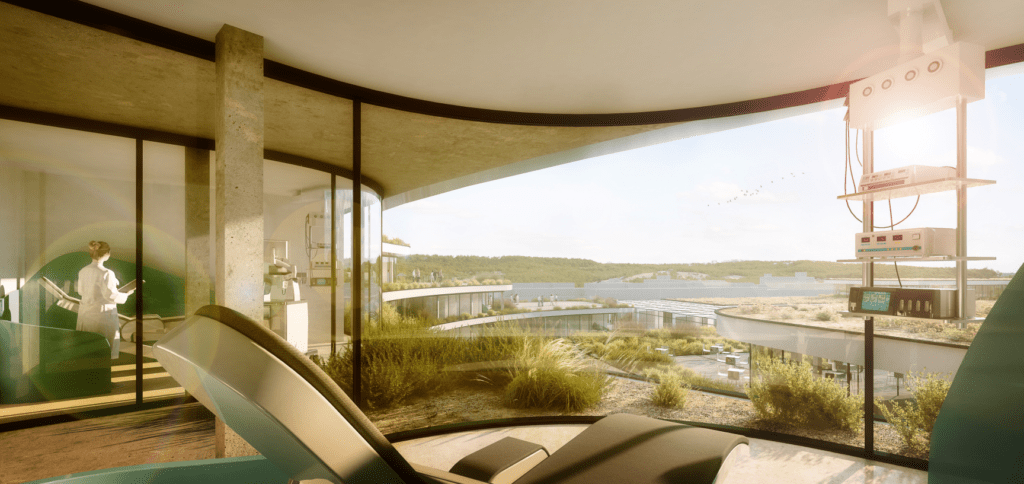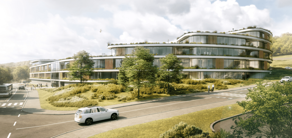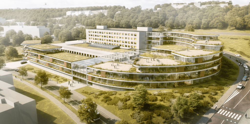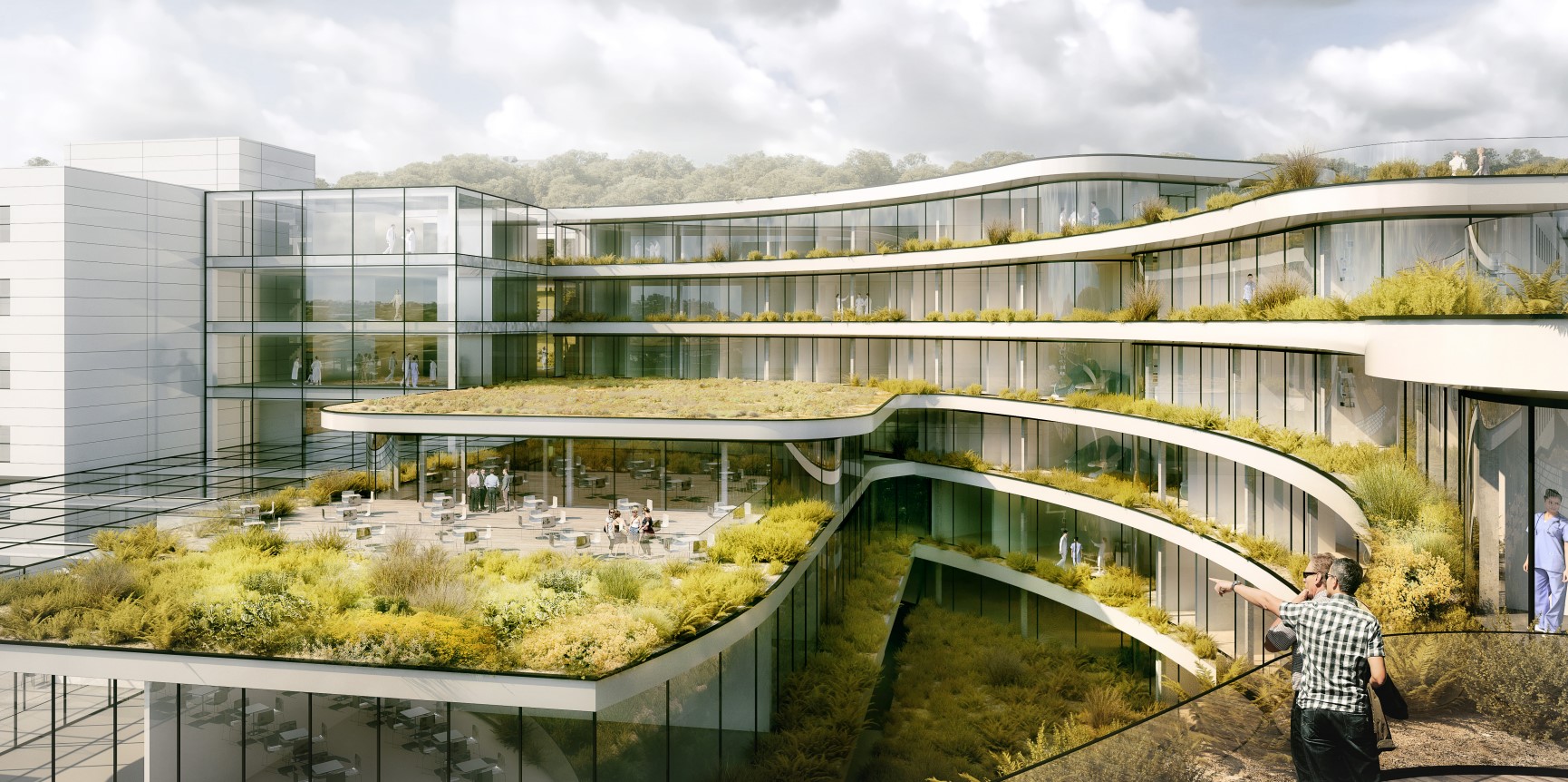 After its completion, the Motol Oncology Centre with cascading terraces and glass facade will be connected to the New Oncology Pavilion, which was first opened in 1997 and is currently undergoing a reconstruction.