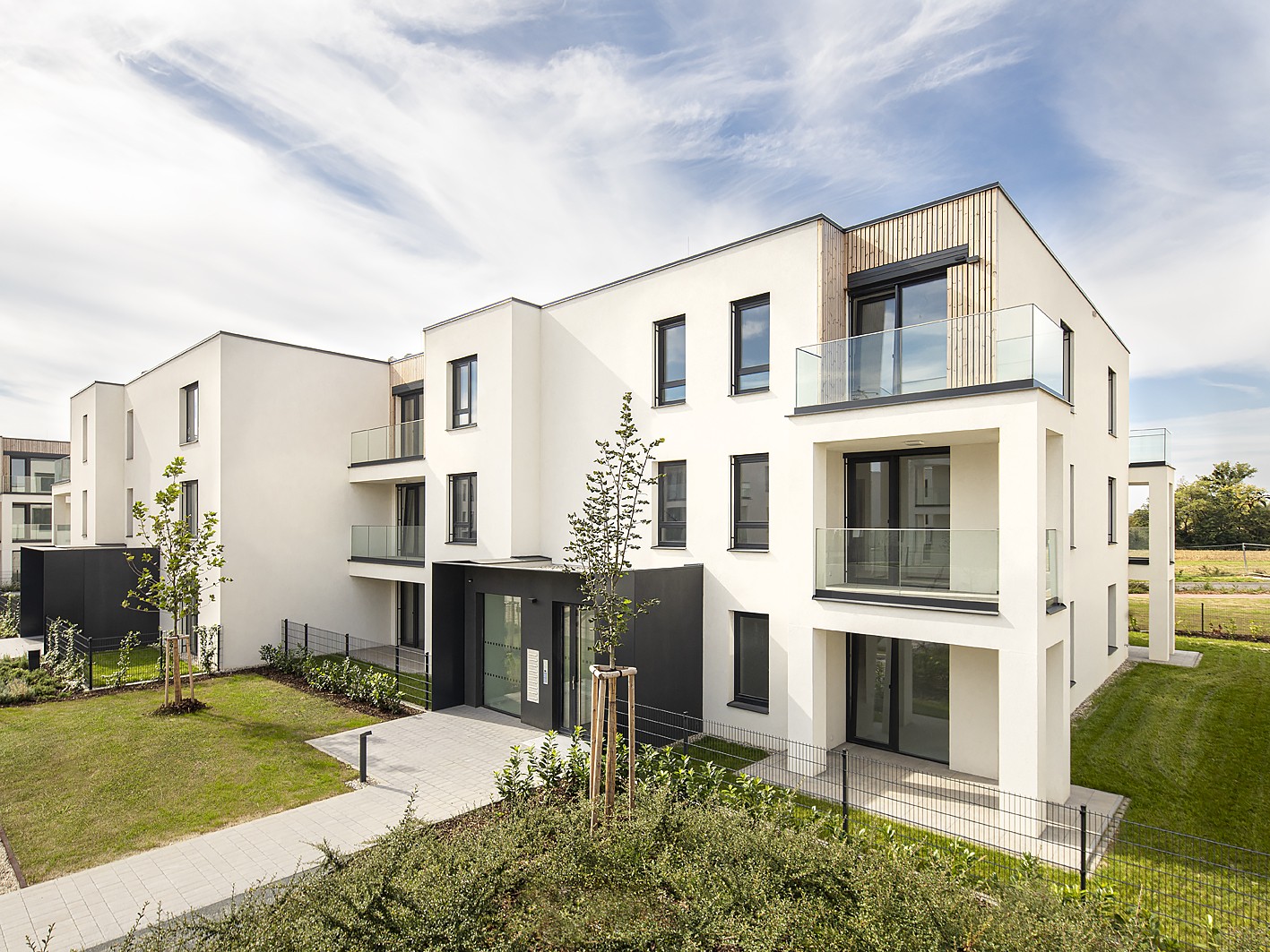 This apartment construction represents a residential complex of three-storey villa houses, situated on the border of the west periphery of Olomouc with a landscape view. The villa houses are divided into five stages creating separate blocks. The functional units, concentrated around their private courtyard, thus form their own semi-private courtyard. Every block is designed with a slightly different architecture and consists of the group of six to nine houses. These are set on the common basement, that is used for the underground parking, the cellars and the utility rooms. The above-ground parts are designed as the compact rational volumes of a rectangular ground plan with a light-coloured plaster in the combination with the wood lining. The masses are complemented by the accents in the form of the sliding shading and the white horizontal stripes on the objects. The supporting structure is designed as a reinforced concrete monolithic in the combination with the brick walls. Some of the enclosing walls are brick in the above-ground storeys. Structurally, it is a skeleton and the combined wall system. The layout is simple and generous, based on the effect of a large grass area with the solitary trees.