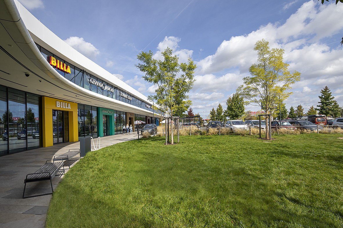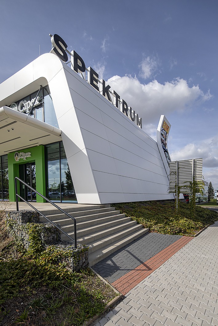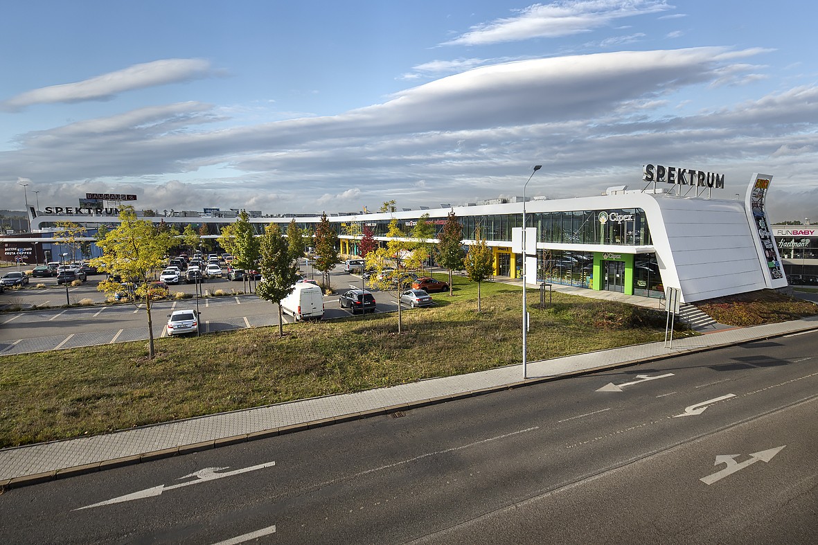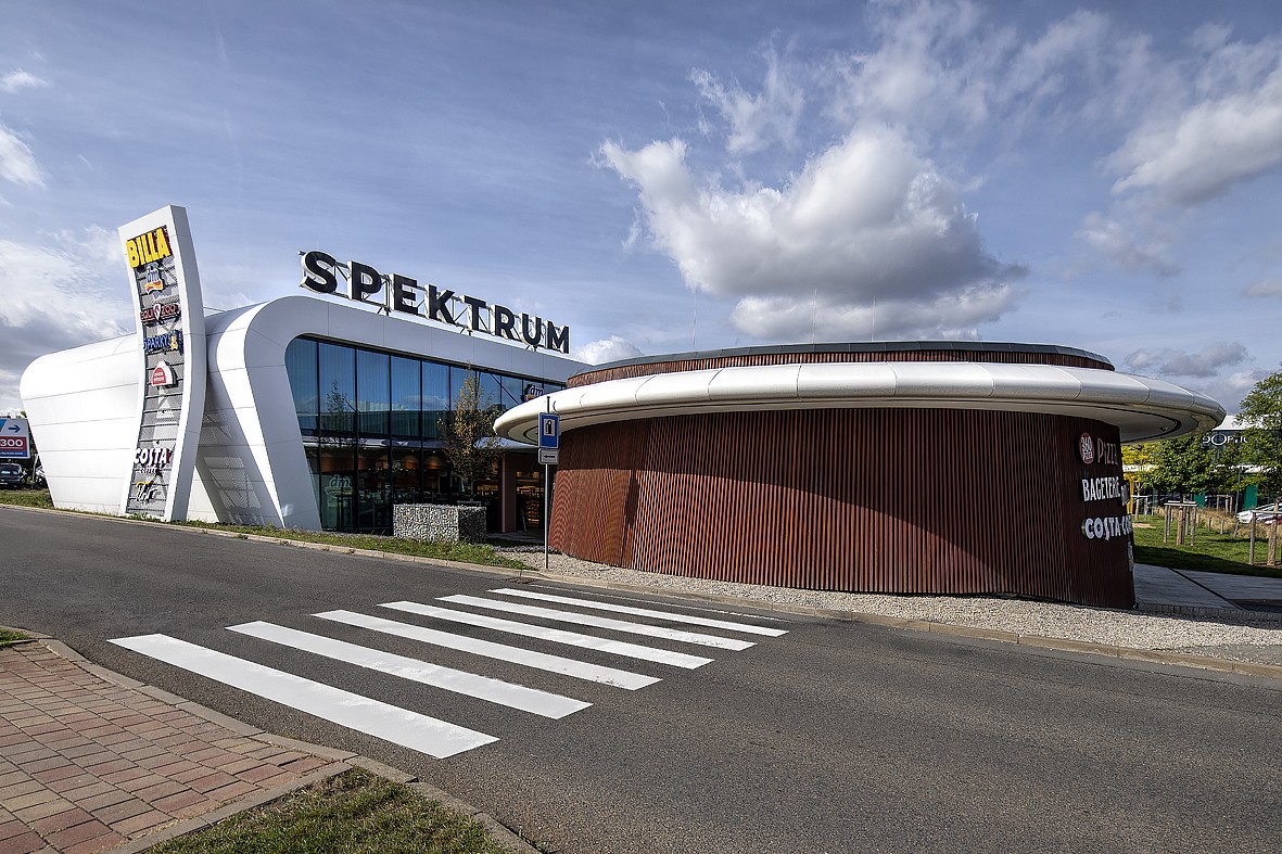 Na místě původního obchodního centra Spektrum v Čestlicích východně od Prahy vznikl otevřený koncept sítě obchodů s nákupní pasáží označovaný jako „strip mall“. Dispoziční řešení zahrnuje halu s řadou jednotek rozmístěných přes celou hloubku objektu, kdy z jedné strany přichází veřejnost a z druhé zásobování. Objekt nabízí budoucím nájemníkům vestavbu duplexů, tedy druhého patra s možností rozšíření prodejní plochy. Půdorys budovy má tvar písmene L, její okolní prostor je vyplněn parkovištěm se vzrostlými stromy. Kompozici doplňuje samostatný objekt oválného tvaru určený pro rychlé stravování a kavárenský provoz a dále dětské hřiště a vodní prvky. Díky průsvitnosti pláště a vytvoření bezespáré homogenní a jednotné hmoty působí tvarově zajímavá budova světlým a vzdušným dojmem. Výrazným prvkem hlavní fasády je průběžná markýza, která poskytuje návštěvníkům centra větší komfort za nepříznivého počasí. Hlavní část fasády obchodních jednotek se skládá z výrazně vertikálně členěných prosklených ploch s konstrukčními prvky tmavě šedé barvy, které vytváří kontrast k bílé hmotě objektu. Na vstupních portálech jsou použity prosvětlené skleněné panely, plechové obklady, ale také přírodní materiály jako dřevo a kámen. Na informačních sloupech vyniká kombinace umělého kamene s vertikální zelenou stěnou, před kterou budou umístěna loga nájemců. Vjezd na parkovací plochu je situován ve stejném místě jako na původní parkoviště a zachováno je i pěší propojení mezi stávajícím OC Spektrum a protější obchodní jednotkou. Chodníky jsou situovány kolem nové obchodní jednotky.