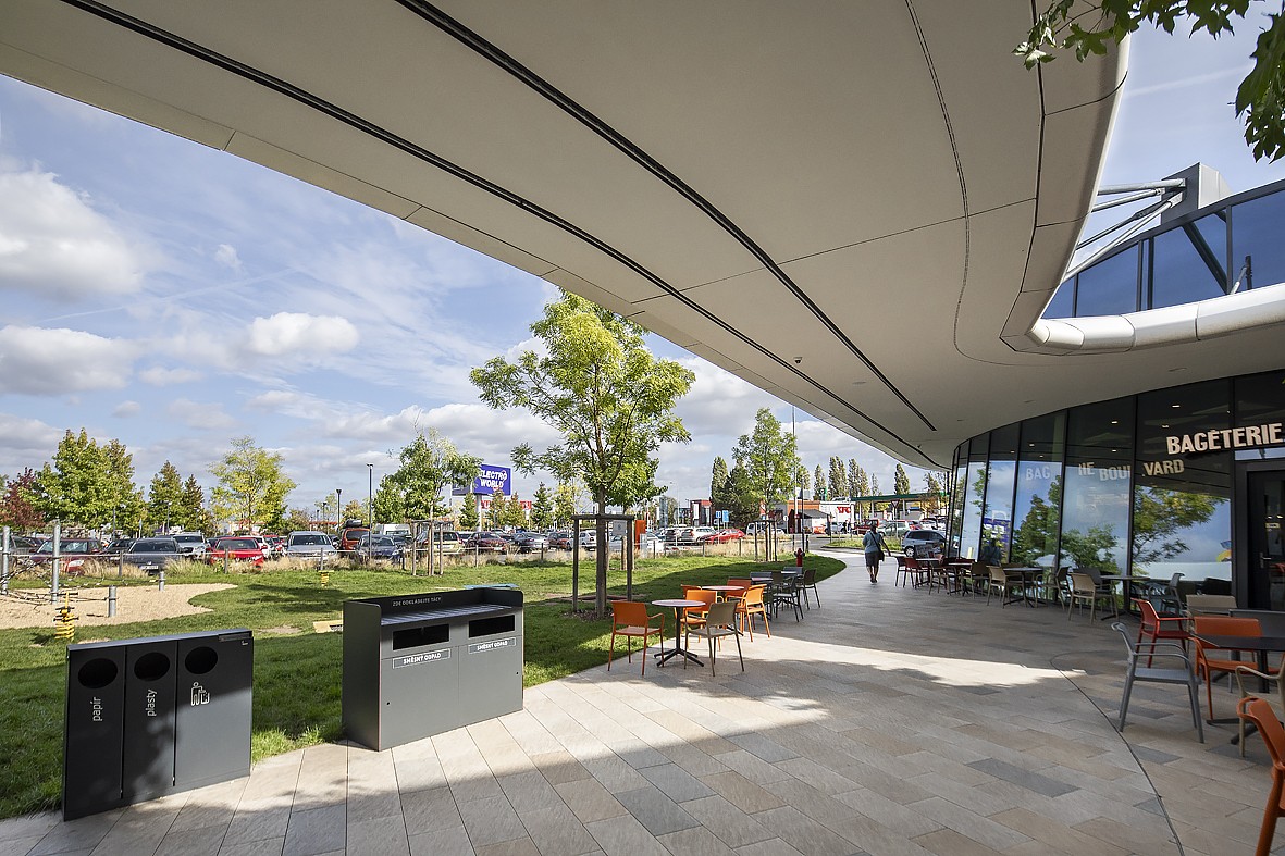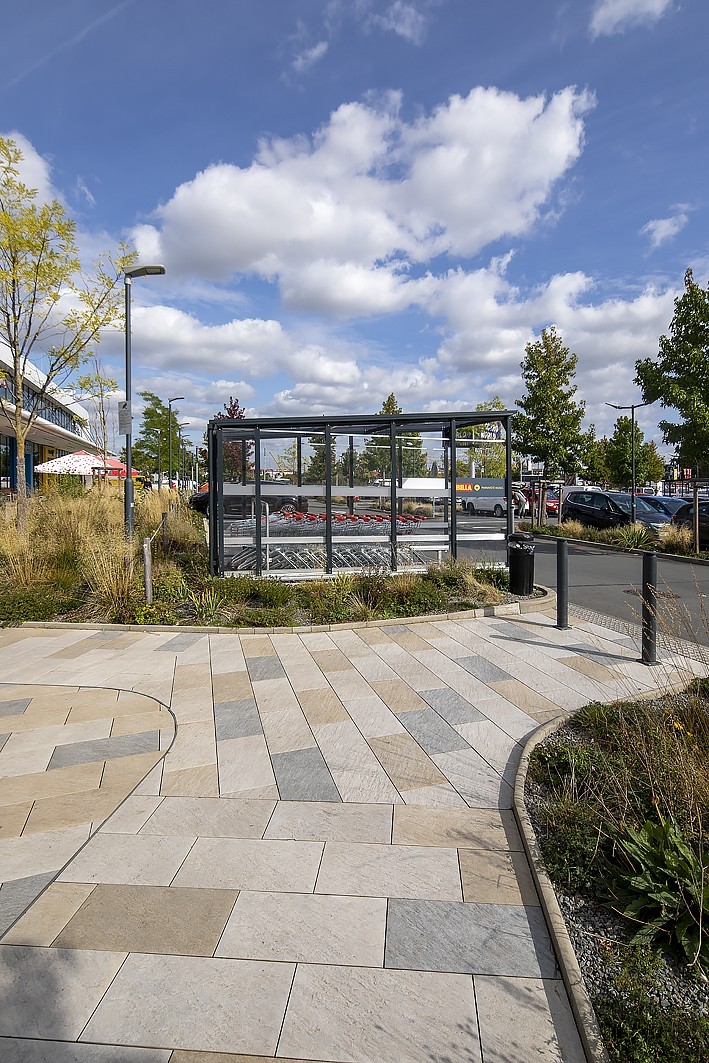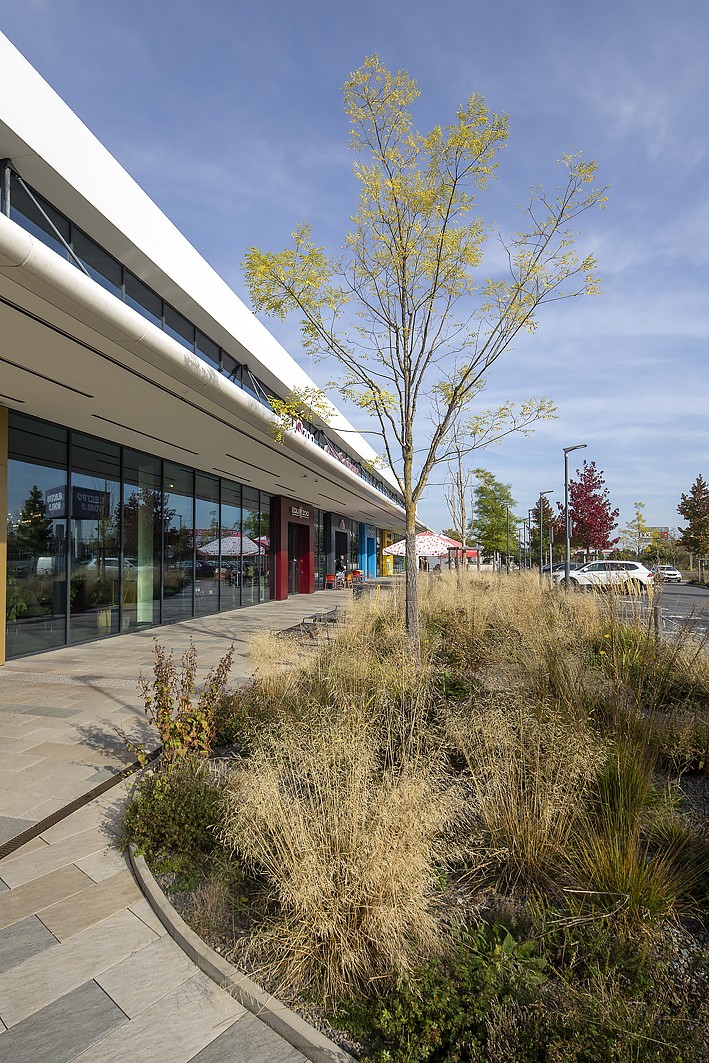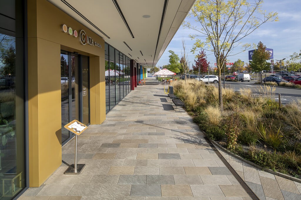 Na místě původního obchodního centra Spektrum v Čestlicích východně od Prahy vznikl otevřený koncept sítě obchodů s nákupní pasáží označovaný jako „strip mall“. Dispoziční řešení zahrnuje halu s řadou jednotek rozmístěných přes celou hloubku objektu, kdy z jedné strany přichází veřejnost a z druhé zásobování. Objekt nabízí budoucím nájemníkům vestavbu duplexů, tedy druhého patra s možností rozšíření prodejní plochy. Půdorys budovy má tvar písmene L, její okolní prostor je vyplněn parkovištěm se vzrostlými stromy. Kompozici doplňuje samostatný objekt oválného tvaru určený pro rychlé stravování a kavárenský provoz a dále dětské hřiště a vodní prvky. Díky průsvitnosti pláště a vytvoření bezespáré homogenní a jednotné hmoty působí tvarově zajímavá budova světlým a vzdušným dojmem. Výrazným prvkem hlavní fasády je průběžná markýza, která poskytuje návštěvníkům centra větší komfort za nepříznivého počasí. Hlavní část fasády obchodních jednotek se skládá z výrazně vertikálně členěných prosklených ploch s konstrukčními prvky tmavě šedé barvy, které vytváří kontrast k bílé hmotě objektu. Na vstupních portálech jsou použity prosvětlené skleněné panely, plechové obklady, ale také přírodní materiály jako dřevo a kámen. Na informačních sloupech vyniká kombinace umělého kamene s vertikální zelenou stěnou, před kterou budou umístěna loga nájemců. Vjezd na parkovací plochu je situován ve stejném místě jako na původní parkoviště a zachováno je i pěší propojení mezi stávajícím OC Spektrum a protější obchodní jednotkou. Chodníky jsou situovány kolem nové obchodní jednotky.